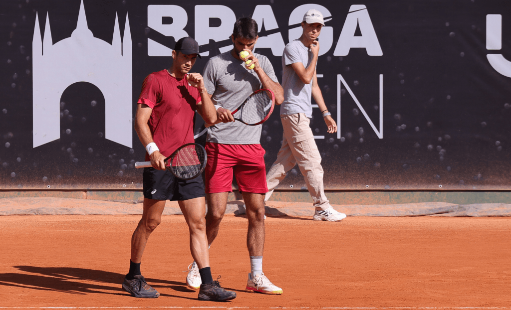 É já neste sábado que vai ficar a conhecer-se os sucessores de Francisco Cabral e Theo Arribage na lista dos campeões de pares do Braga Open. Sendo que certo que não haverá representação portuguesa na final da variante, que terá lugar nunca antes das 15.00 horas, há garantia de que vai falar-se a língua de Camões, todavia, com o sotaque adocicado do Brasil, não fossem Orlando Luz e Marcelo Demoliner (na foto) uma das duplas protagonistas.